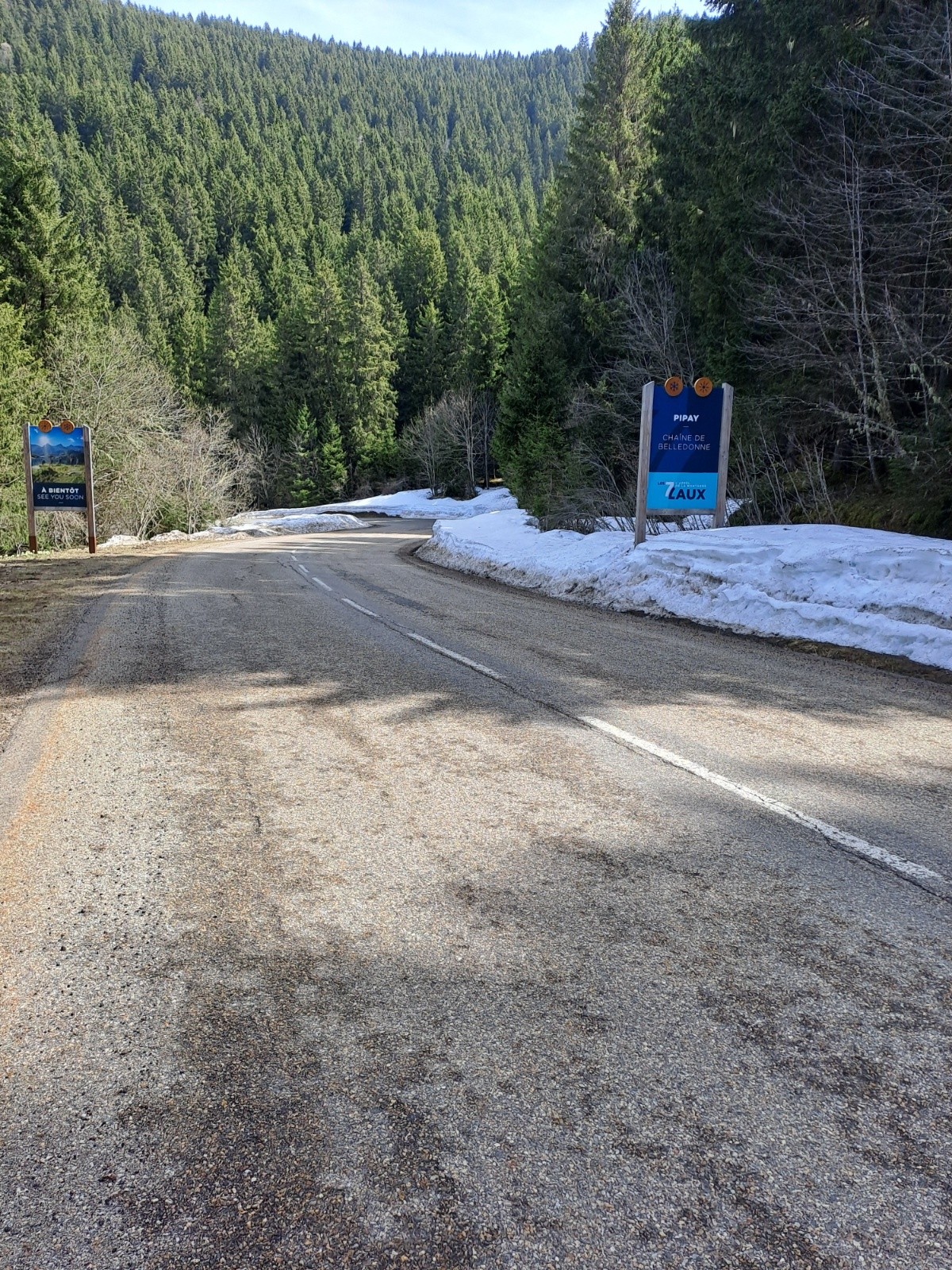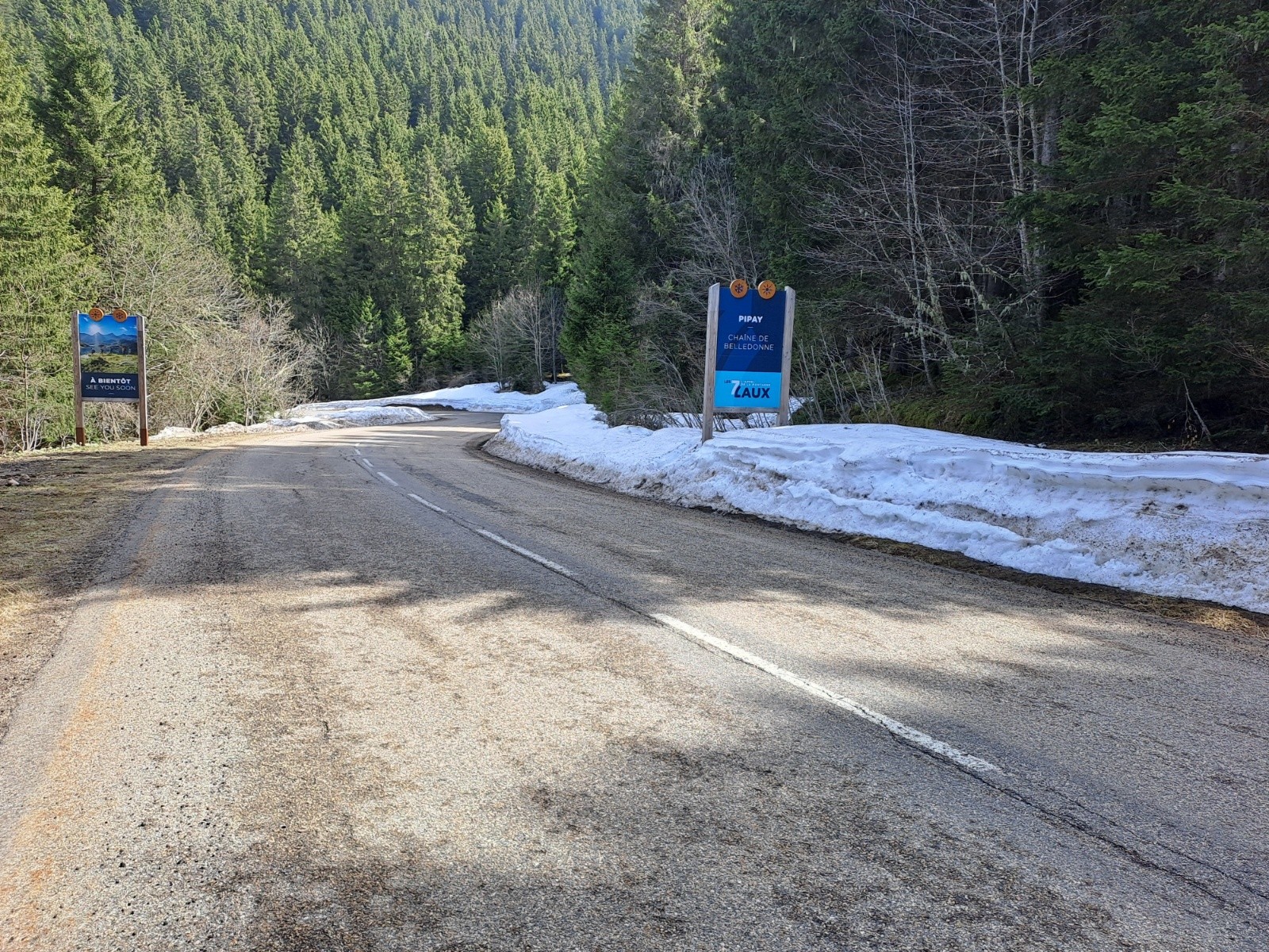 Encore quelques névés en bordure de route, il fait frais dans la descente